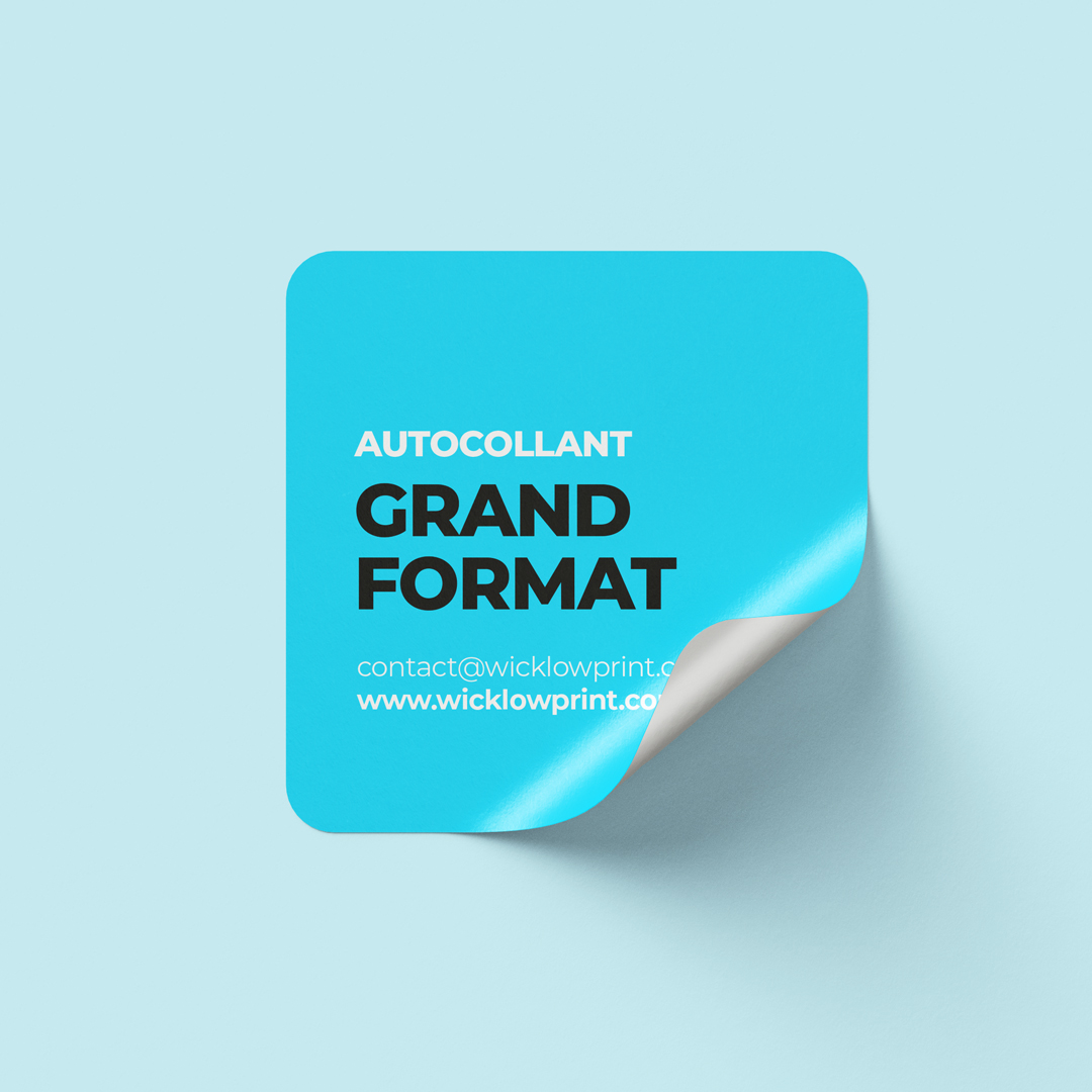 GRAND FORMAT > AUTOCOLLANT impression professionnelle personnalisée. Grammage : Autocollant Vinyle – Blanc Papier : Autocollant Vinyle -Transparent Impression : Autocollant Vinyle – Vitrophanie Finition : Lettrage Vinyle > Découpe Qualité, rapidité et tarifs compétitifs.